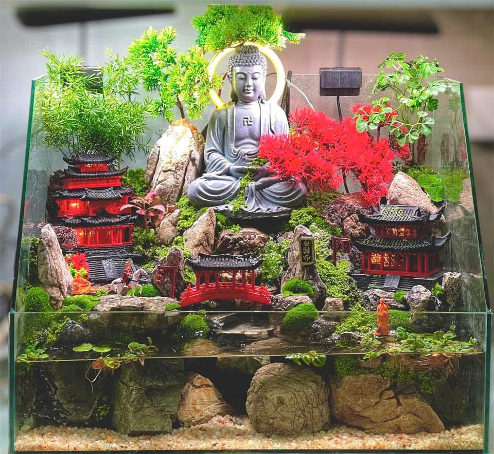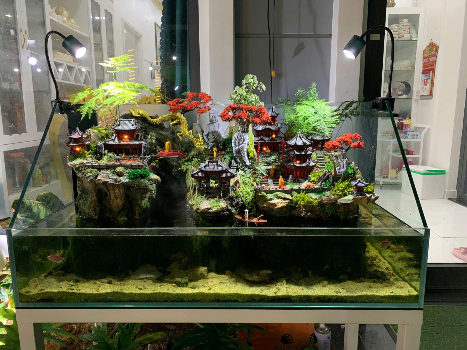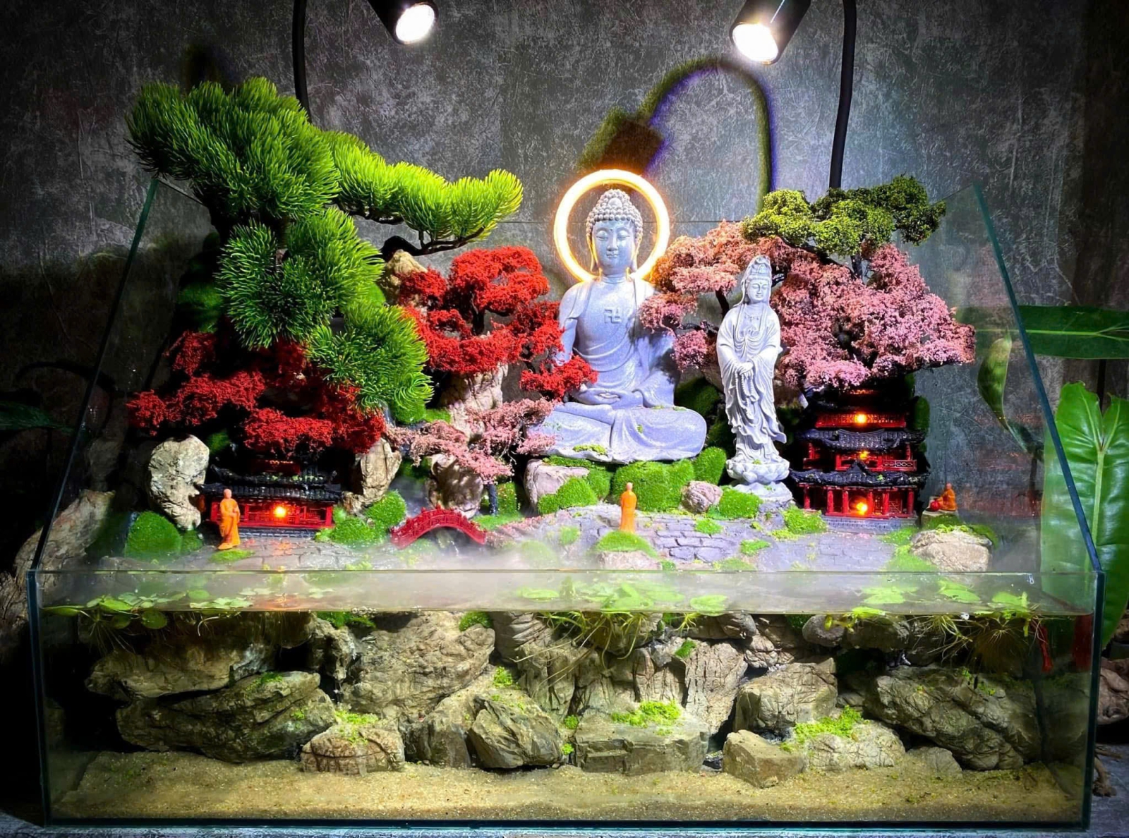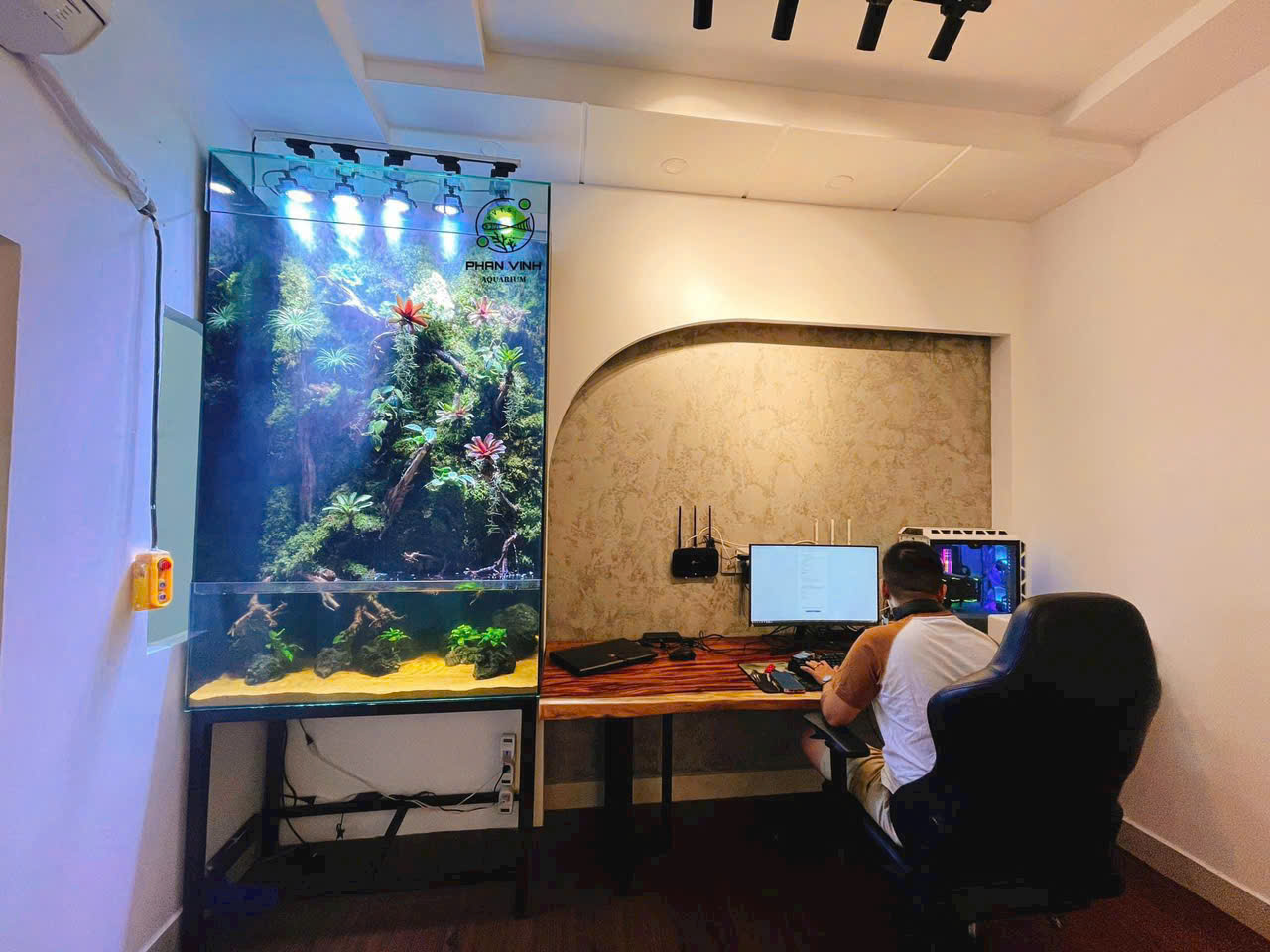 Tư vấn, lắp đặt hồ thủy sinh bán cạn trang trí trong nhà tại TPHCM